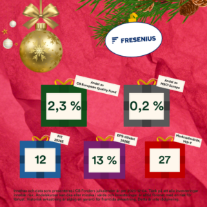 Leading up to Christmas, we are presenting the holdings in CB Fonder’s funds. In door six, we find Fresenius, a holding in the CB European Quality Fund, and California Water Services, a holding in the CB Save Earth Fund.