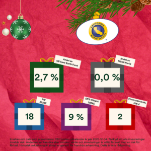 Please note that CB Fonder’s Advent Calendar presents the fund’s holdings as of December 4, regardless of what happens going forward. This means that a company could theoretically have left the portfolio by the time of the current door’s opening.