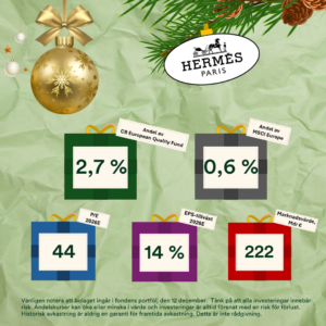 Fredagens lucka innehåller franska Hermès, innehav i CB European Quality Fund och brittiska National Grid, innehav i CB Save Earth Fund.