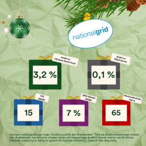 Tänk på att alla investeringar innebär risk. Andelskurser kan öka eller minska i värde och investeringar är alltid förenat med en risk för förlust. Historisk avkastning är aldrig en garanti för framtida avkastning. Vänligen notera att bolagen ingår i respektive fonds portfölj den 12 december. Bolagen kan i teorin lämnat portföljerna vid tidpunkten för publicering av den aktuella luckan.