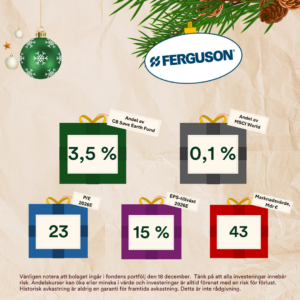Detta meddelande ska inte betraktas som finansiell rekommendation, men som marknadsföring. Tänk på att alla investeringar innebär risk. Andelskurser kan öka eller minska i värde och investeringar är alltid förenat med en risk för förlust. Historisk avkastning är aldrig en garanti för framtida avkastning. Vänligen notera att bolagen ingår i respektive fonds portfölj den 18 december. Bolagen kan i teorin lämnat portföljerna vid tidpunkten för publicering av den aktuella luckan.