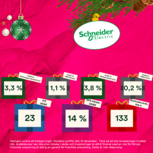 Bakom lucka 19 hittar vi Diploma i CB European Quality Fund och WSP i CB Save Earth Fund, samt det gemensamma innehavet Schneider Electric.