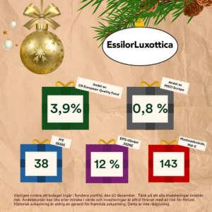 Bakom lucka 20 hittar vi EssilorLuxottica i CB European Quality Fund samt Halma, som ingår i både CB Save Earth Fund och CB European Quality Fund.