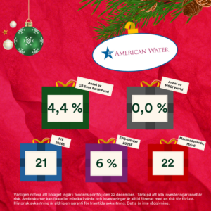 Bakom lucka 22 hittar vi Novartis i CB European Quality Fund och American Water i CB Save Earth Fund.